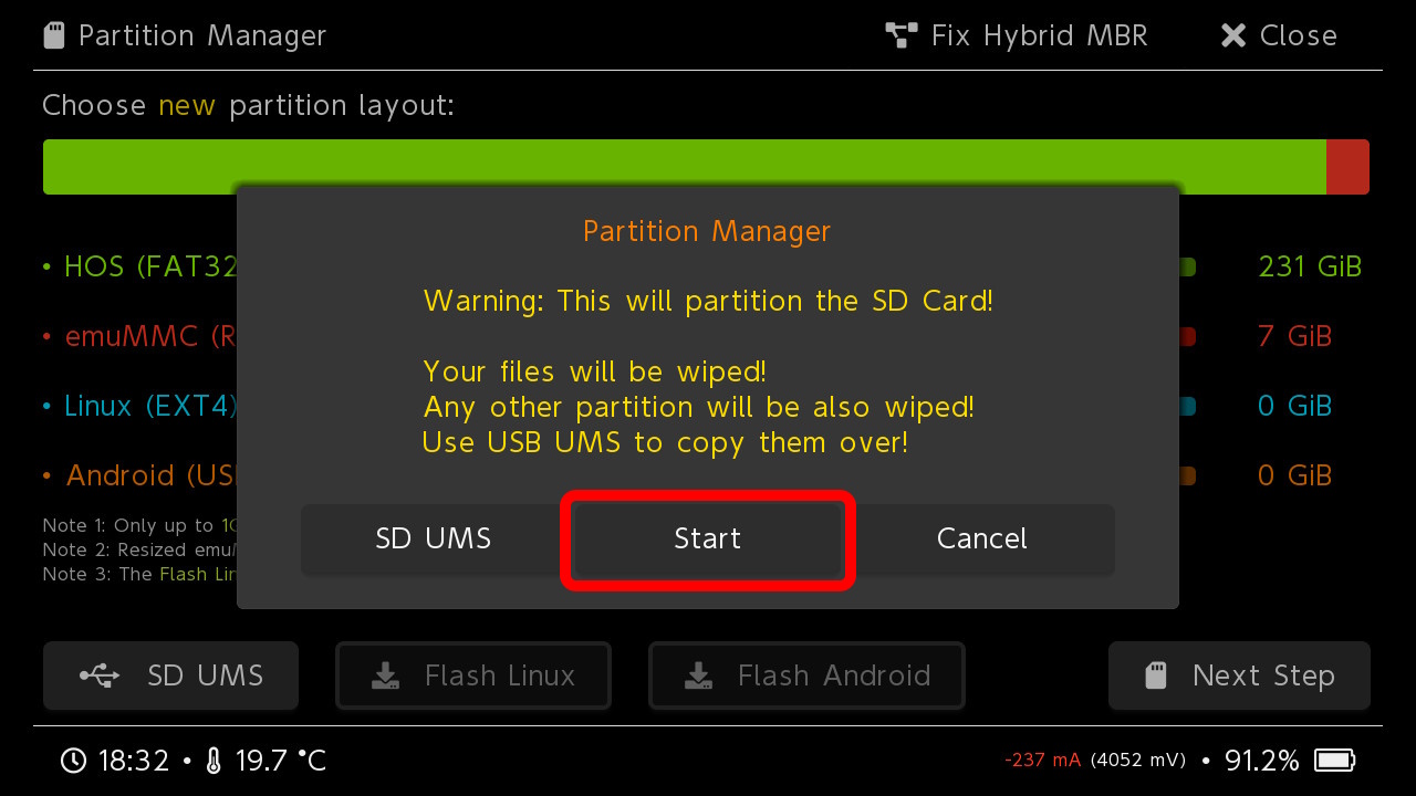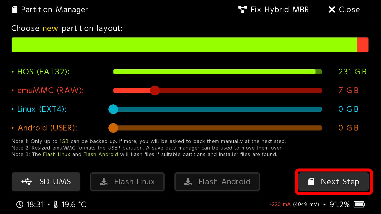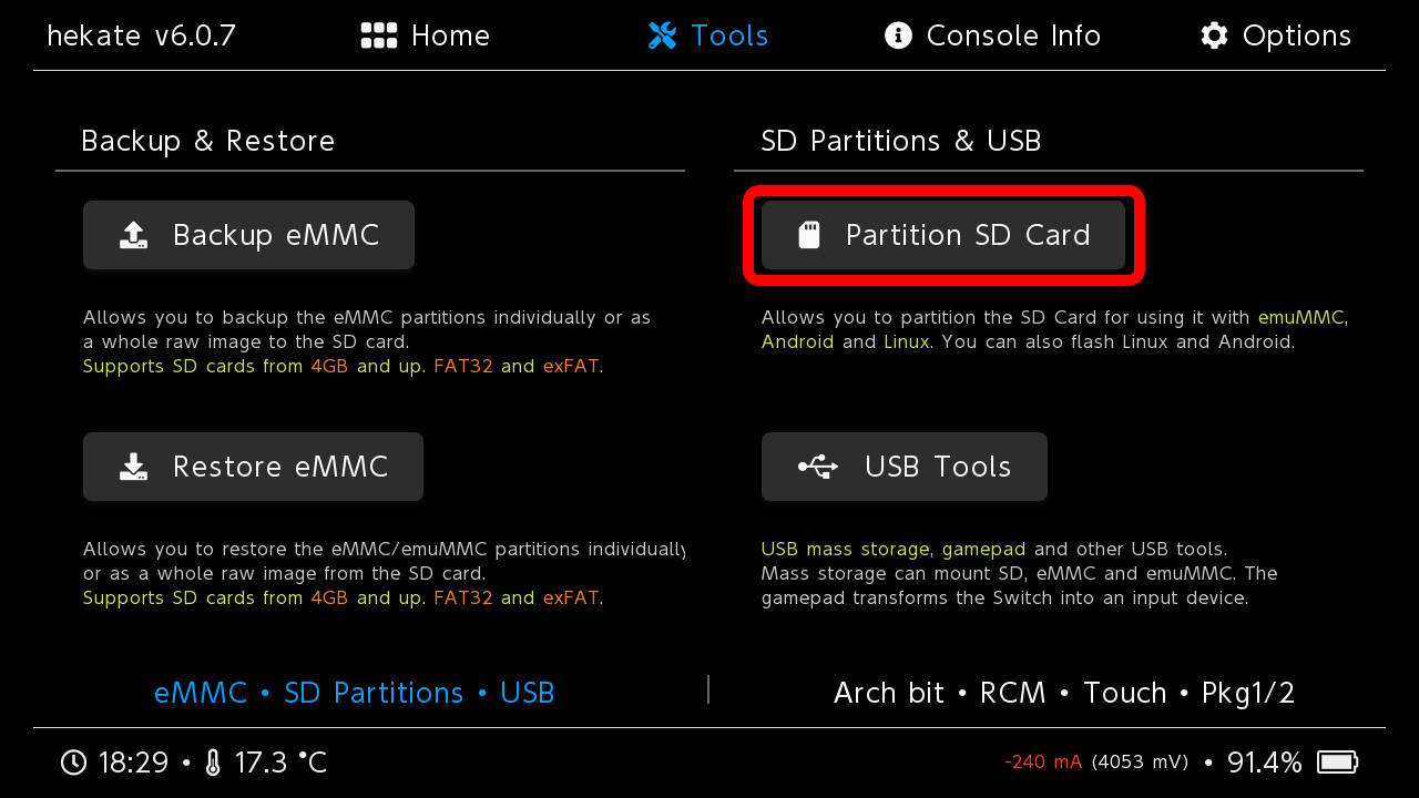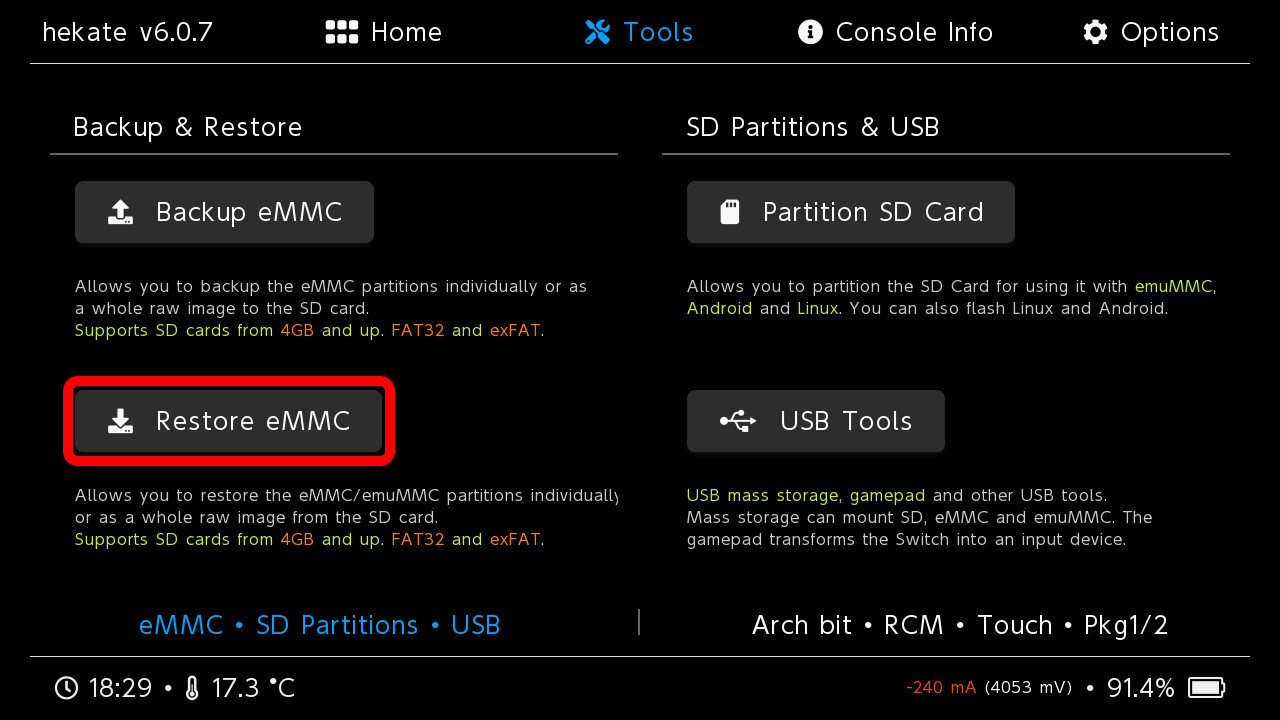 - Убедитесь, что на карте памяти есть свободное место для бэкапа. Требуемое место зависит от размера Эмунанда, если вы не редактировали размер при создании, то для v1/v2/lite - 32gb, для oled - 64gb.