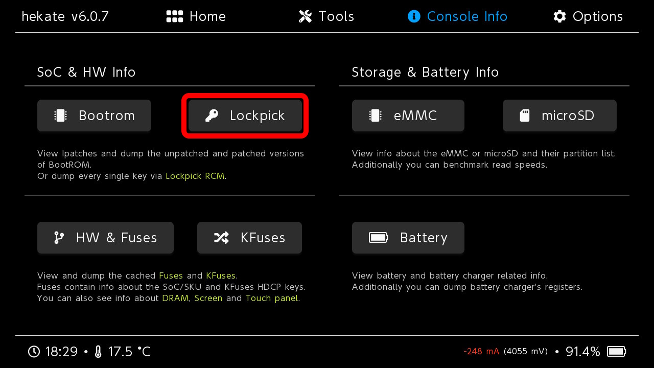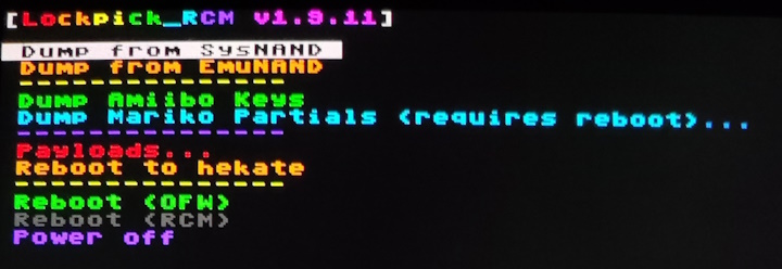 Консоль загружается в payload LockpickRCM, в нем управляем кнопками Громкость