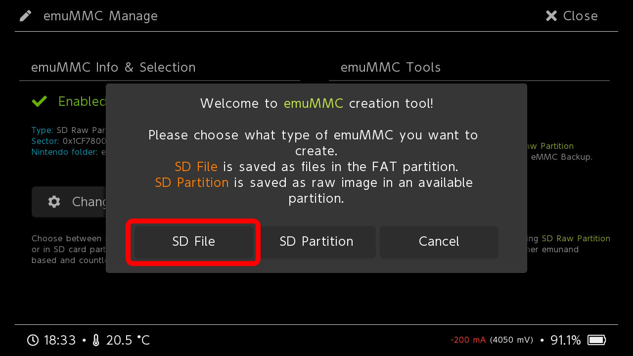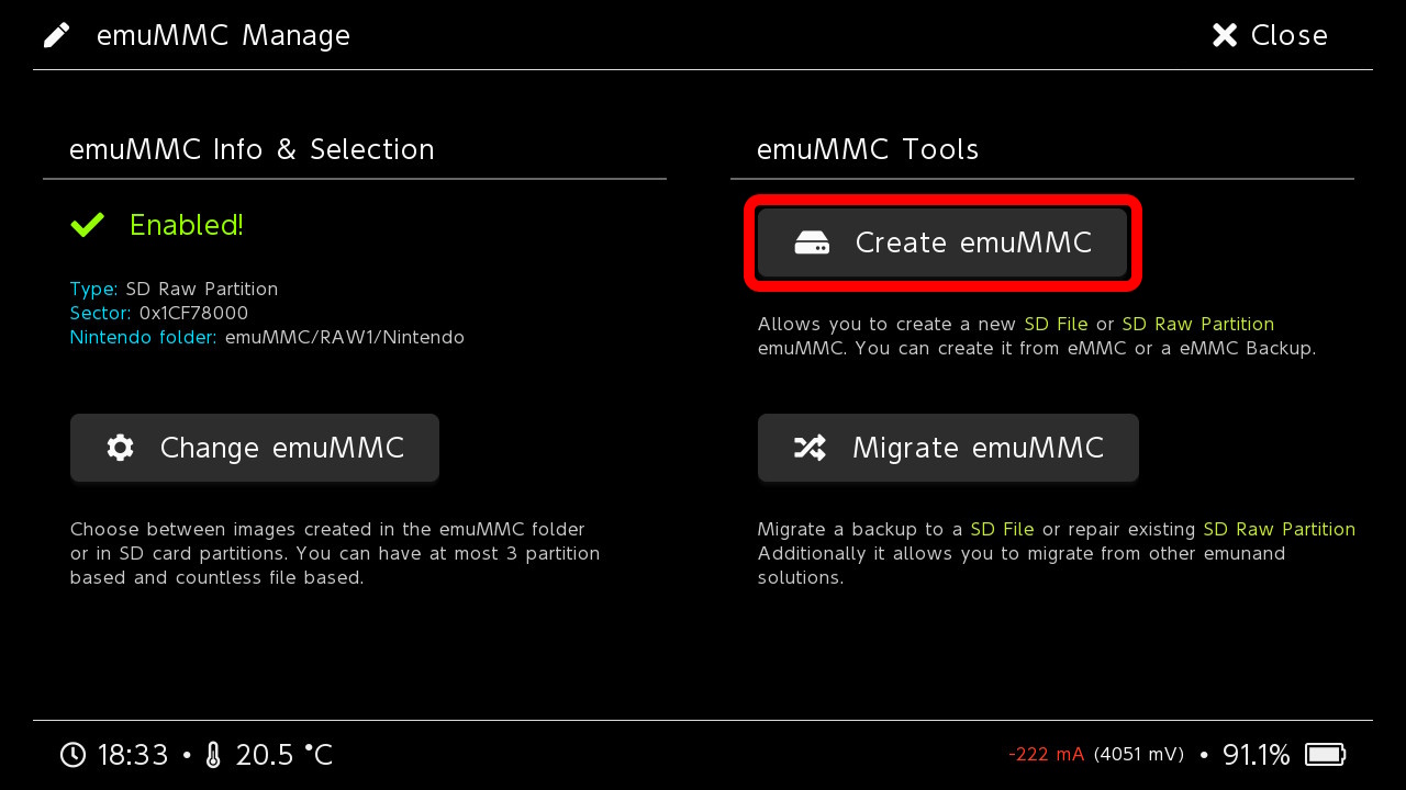 - Убедитесь, что на карте памяти есть свободное место для создания Эмунанда. Требуемое место зависит от размера Сиснанда (v1/v2/lite - 32gb, oled - 64gb).