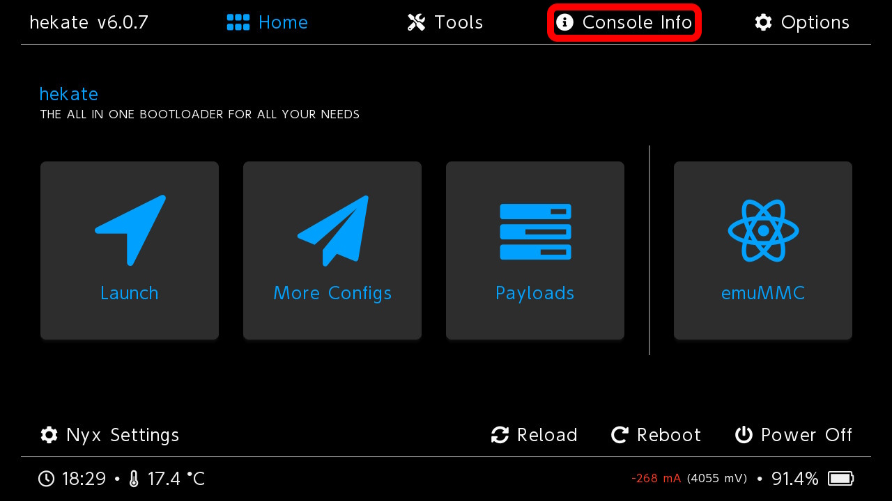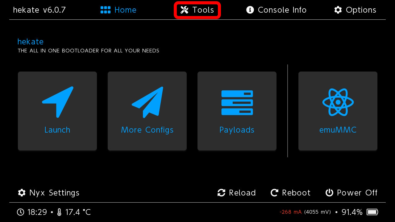 Для всех последующих действий потребуется наличие Hekate на консоли.