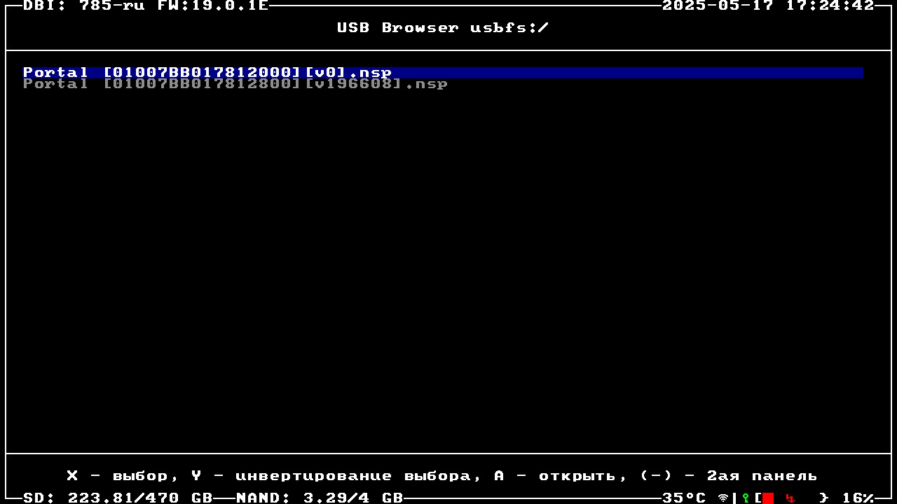 - Подключаем консоль по кабелю к ПК, заходим в DBI и нажимаем Y.