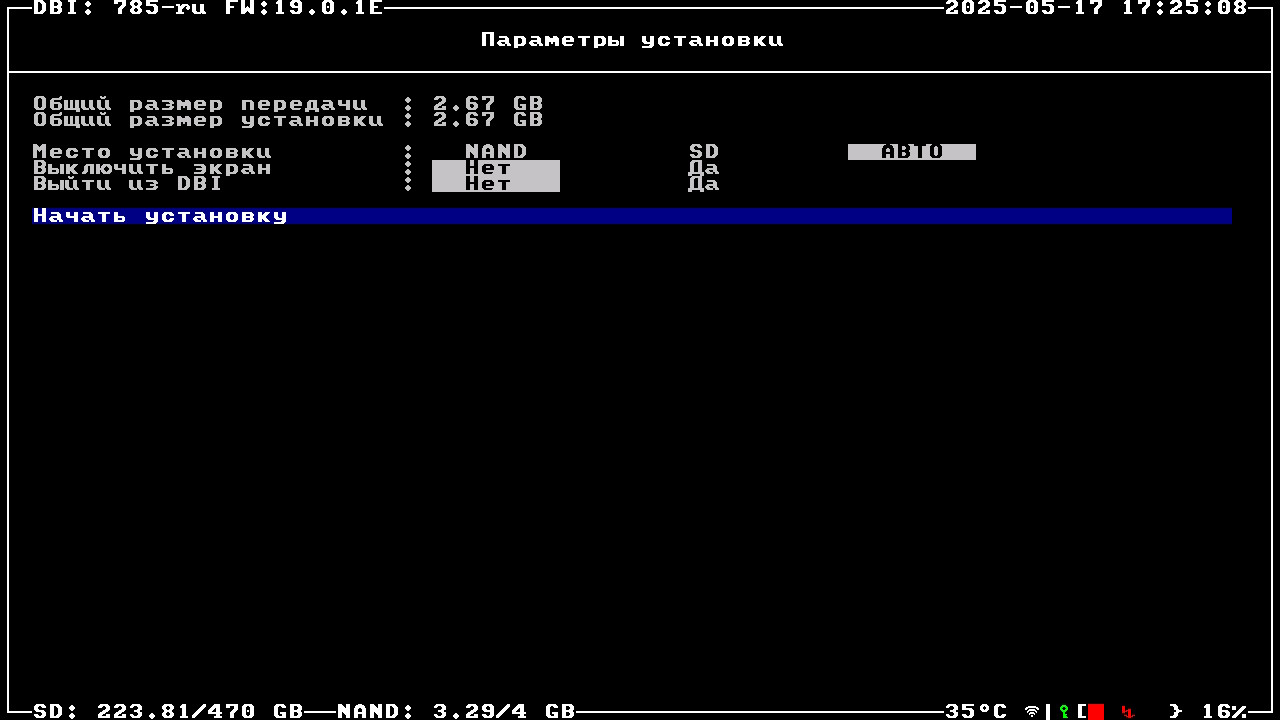 - Подключите консоль по кабелю к ПК, откройте DBI и нажмите