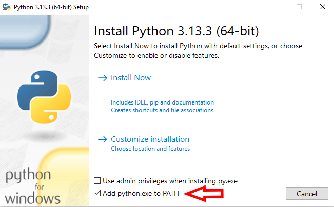 - Запустите установку и в первом окне поставьте галочку для пункта Add python.exe to PATH. Затем нажимаем Install now и ждем завершения установки, после чего выходим из установщика нажатием Close.