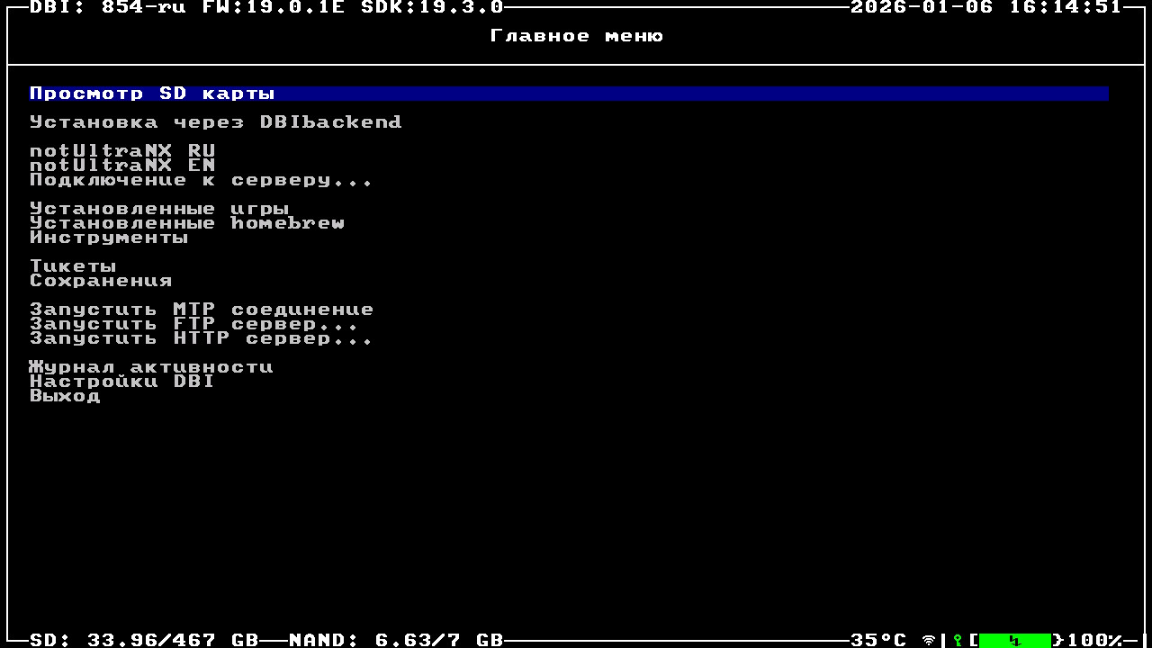 - Откройте DBI при помощи Sphaira(R+альбом или игра) или ярлыка, если он у вас создан